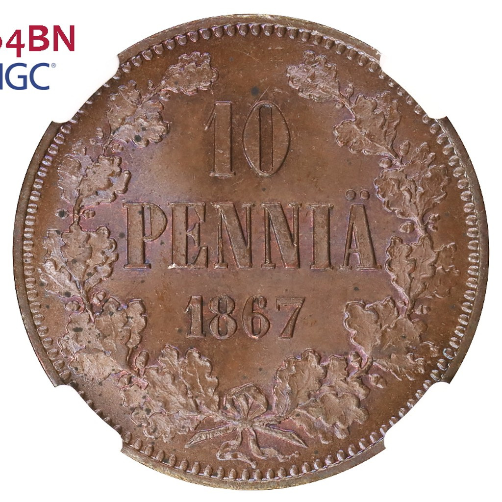 Монета в слабе NGC. Биткин 653. Пред TOP GRADE. Выше грейдом только одна монета! Великолепный коллекционный экземпляр. Год: 1867 Материал: Медь Период: Александр II Грейд: MS 64 BN