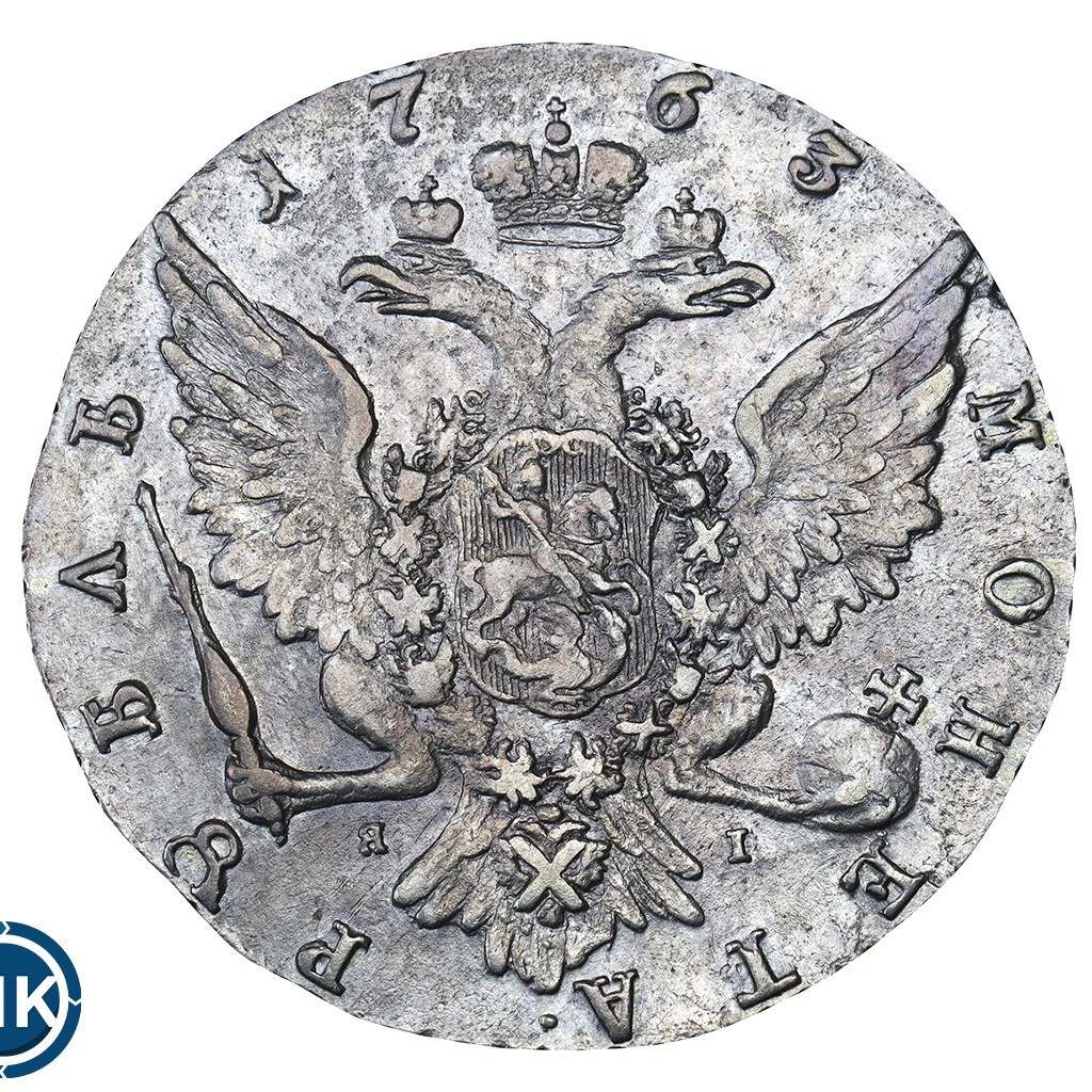 Серебро 23,48 г. Уздеников 947. Биткин 184. Дьяков 20,21. Поверхностная коррозия. Год: 1763 Материал: Серебро Период: Екатерина II